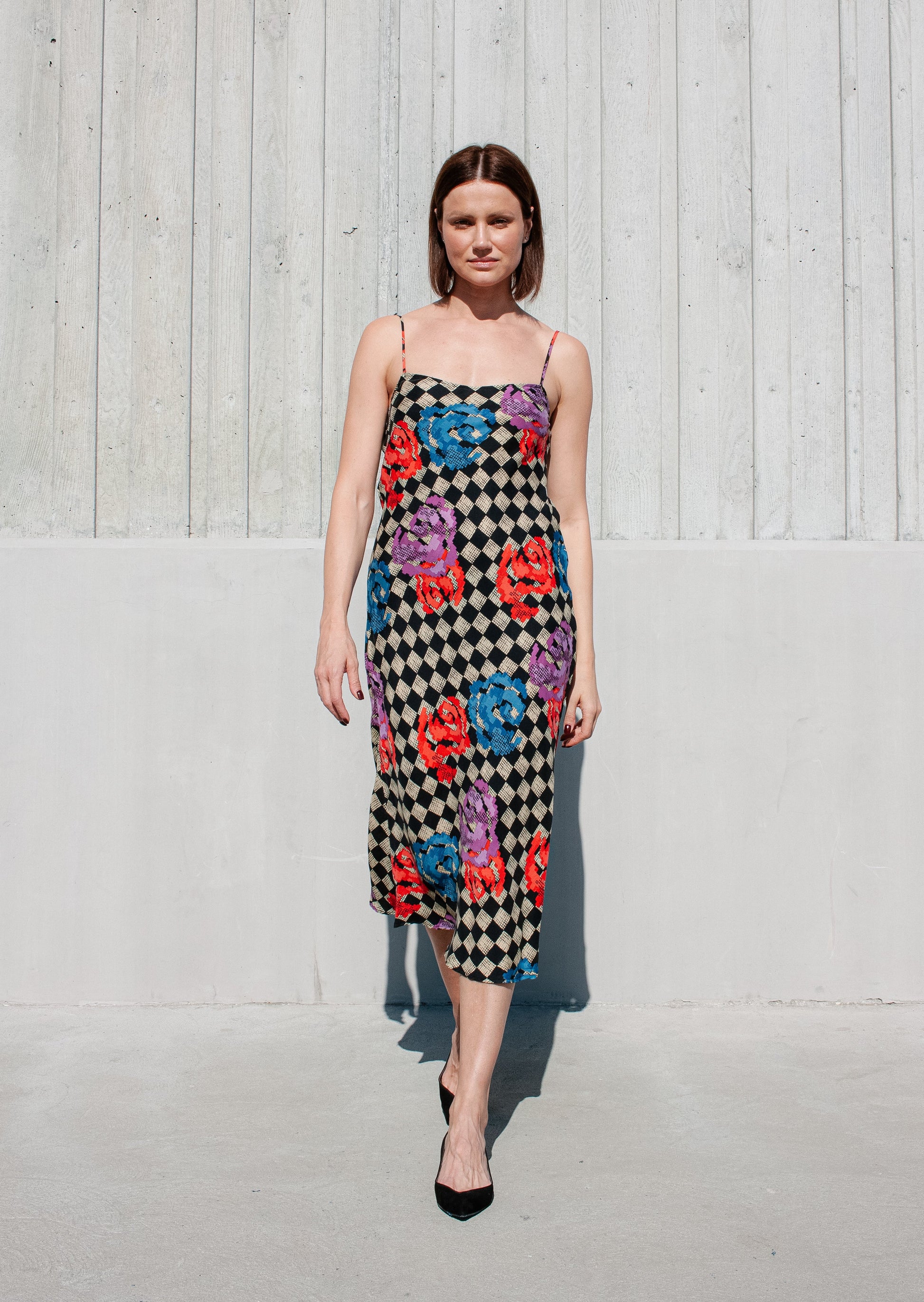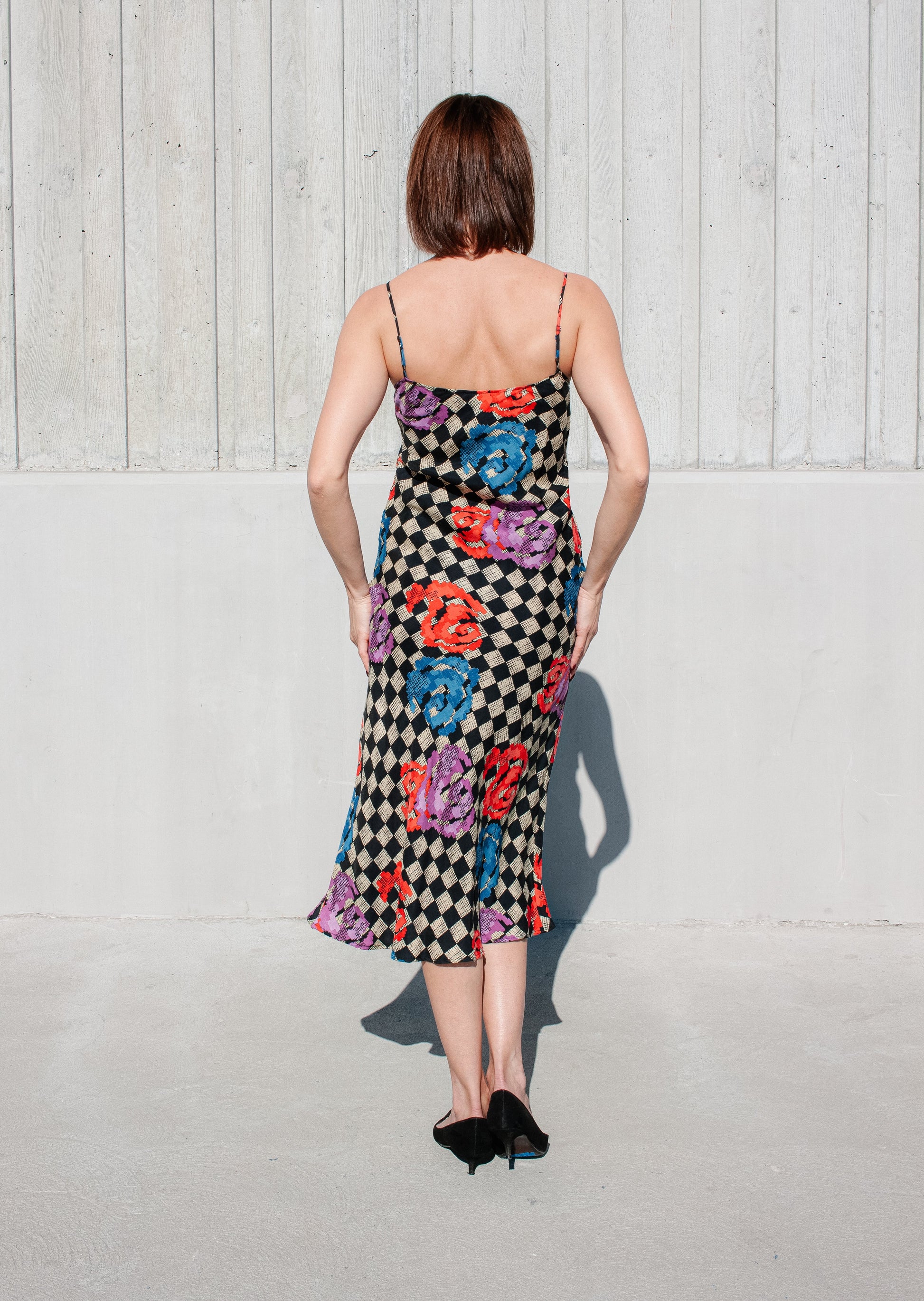 We've been dreaming of Aurora. A bias cut slip dress, that grazes ever so perfectly over your figure, in stunning bold prints. Featuring a charming scoop neckline, adjustable straps and just above the ankle length.