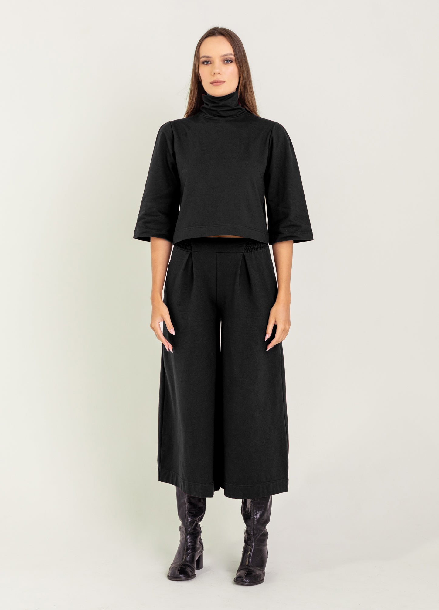 This unique, wide sleeve top is one of our favorites! It's cut from our luxurious French Terry. Pairs well with the Atlas Pant!