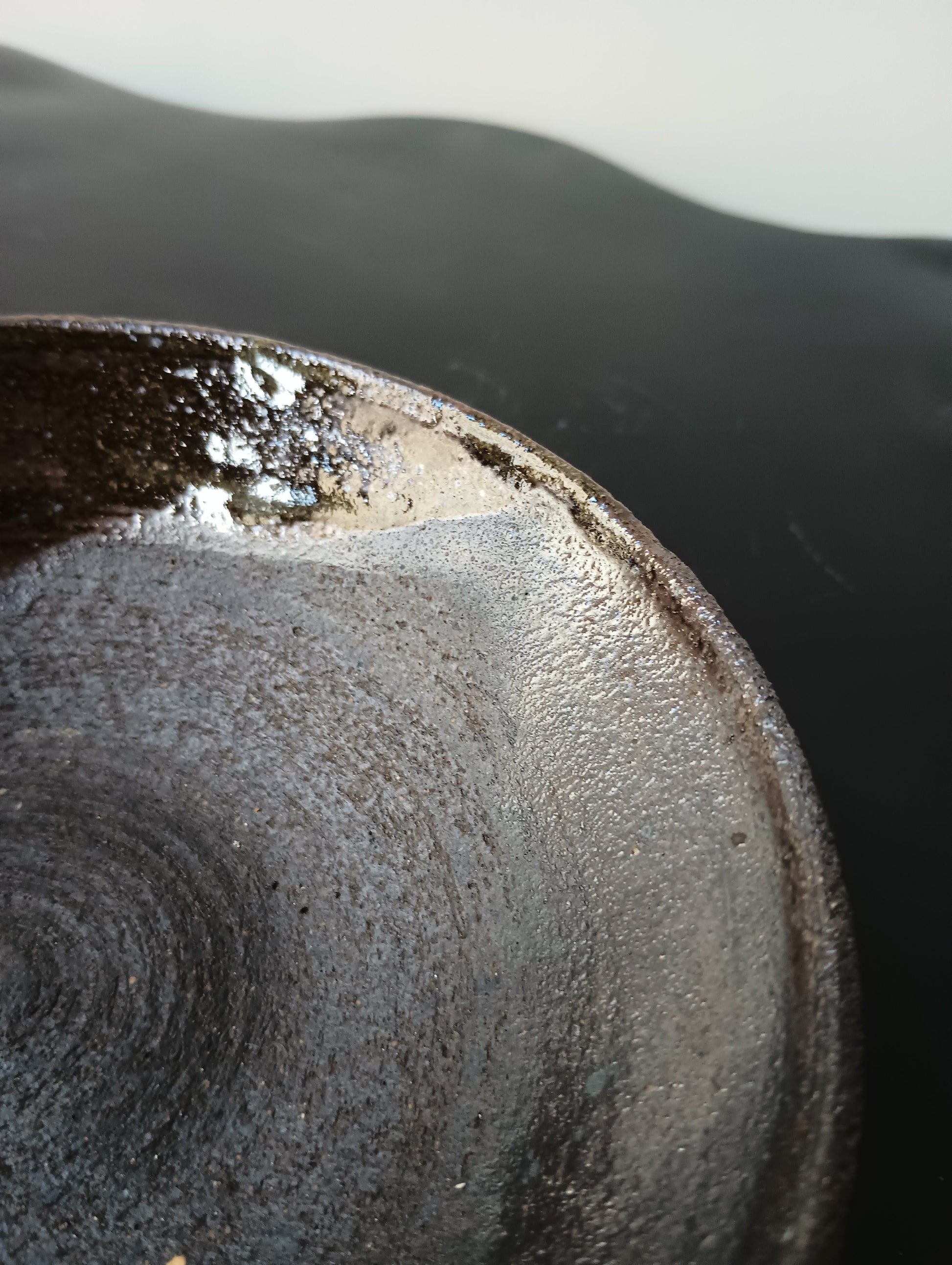 Fired black clay bowl with a beautiful partial glaze on either side. Dishwasher safe