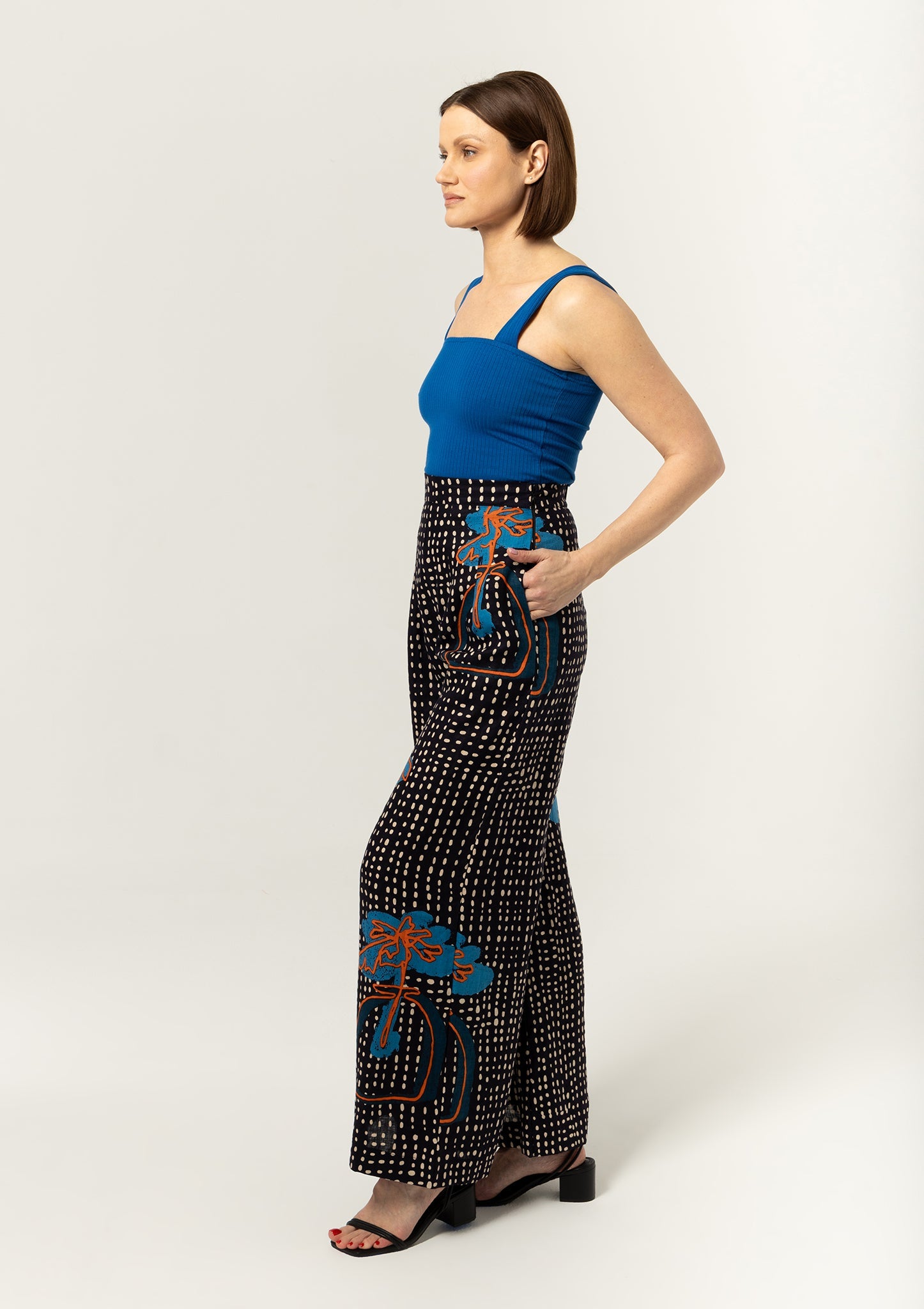 Designed with the modern woman in mind, Chelsey is for the adventurous and independent soul. Wide legs and an elastic waistband provide comfort, while pleats, prints, and pockets take it up a notch. Invisible zipper on the side.