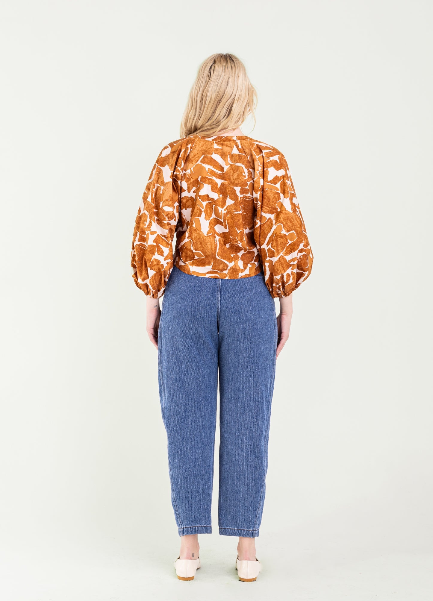 A simple yet artfully crafted crop top, Colby is a loose-fitting staple with puff sleeves, a scoop neckline, and buttons in the front. An easy go-to that elevates any outfit in need of a perfect mid-length sleeve.