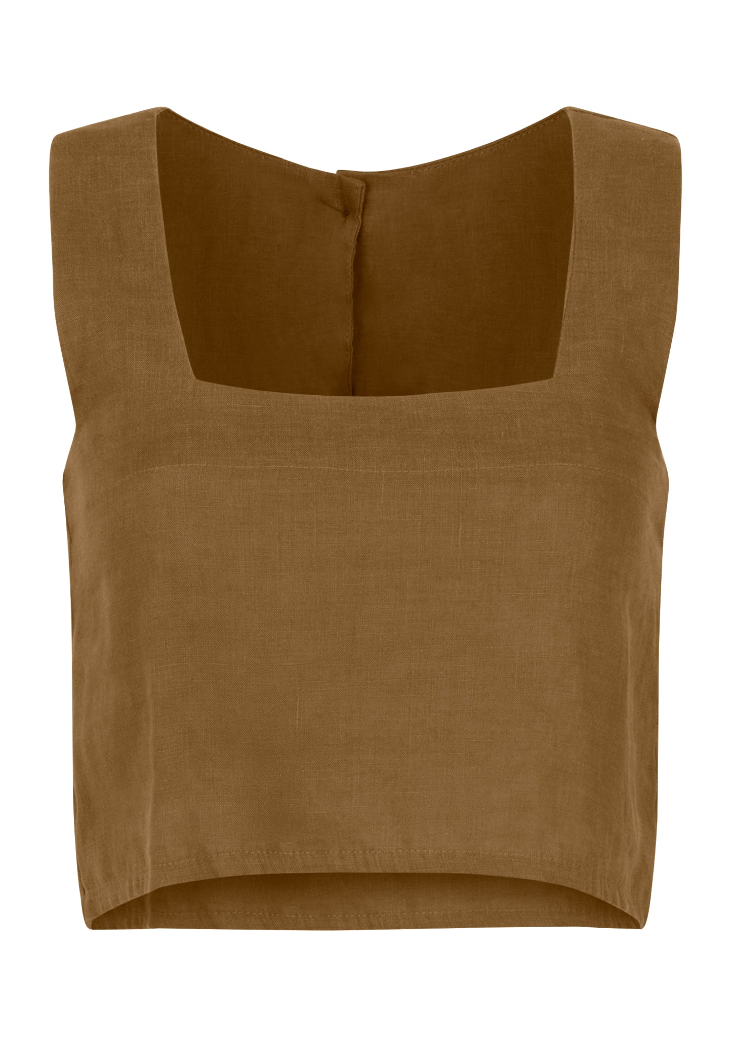 It’s in the details. This apron tank has a squared neckline in the front, the sweetest coconut buttons in the back and does it all in vibrant hues. Pair with the Atlas Pant.
