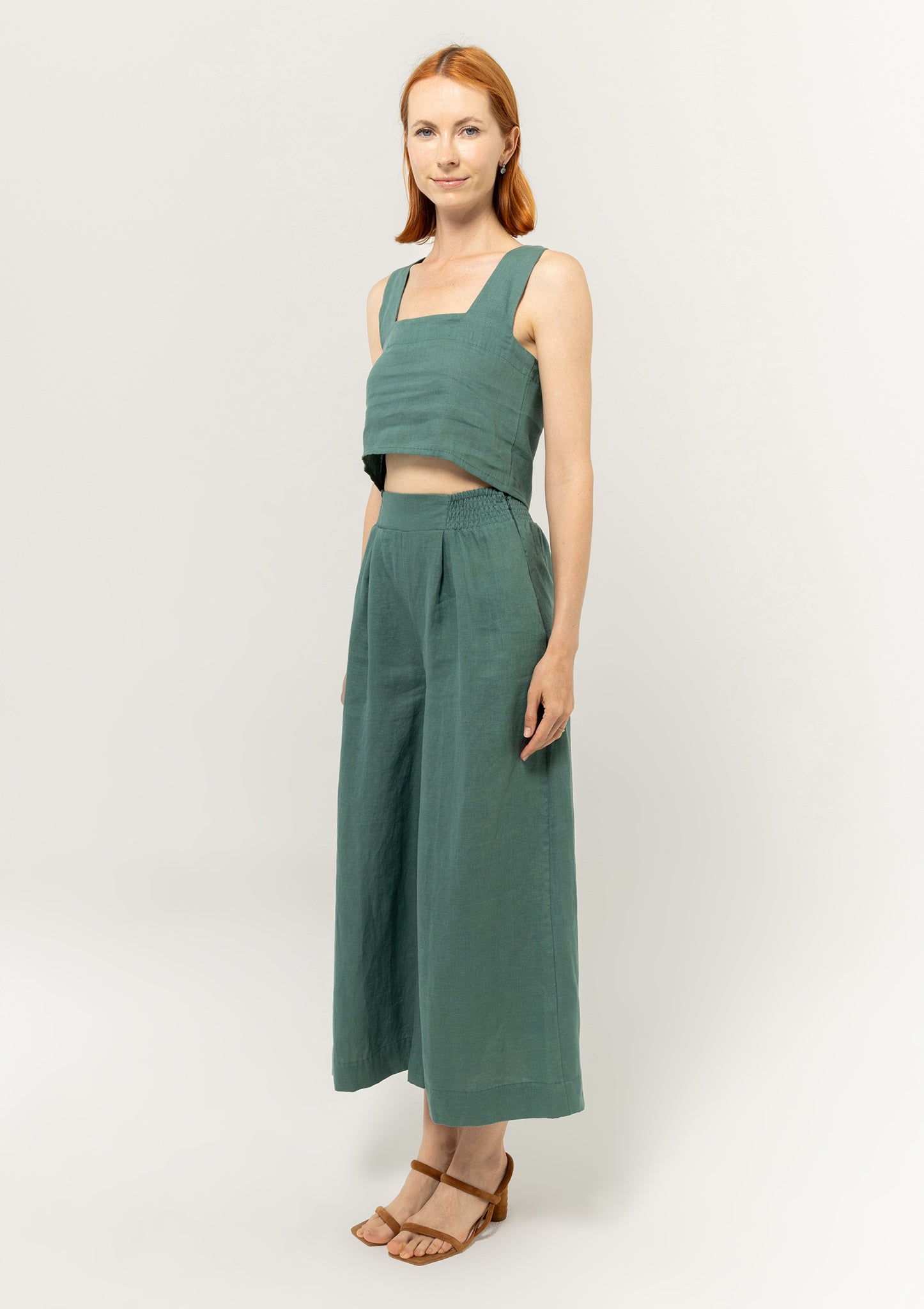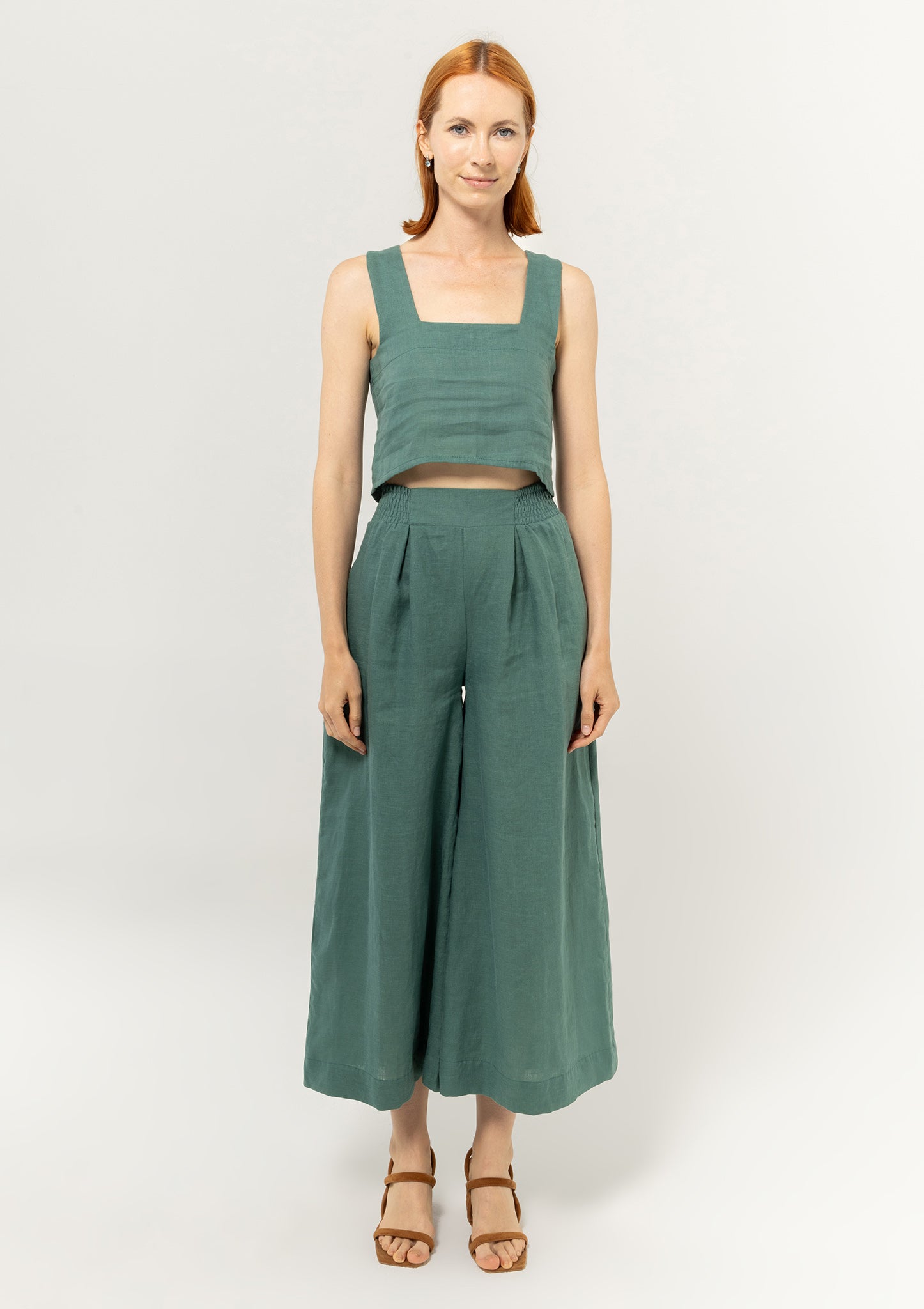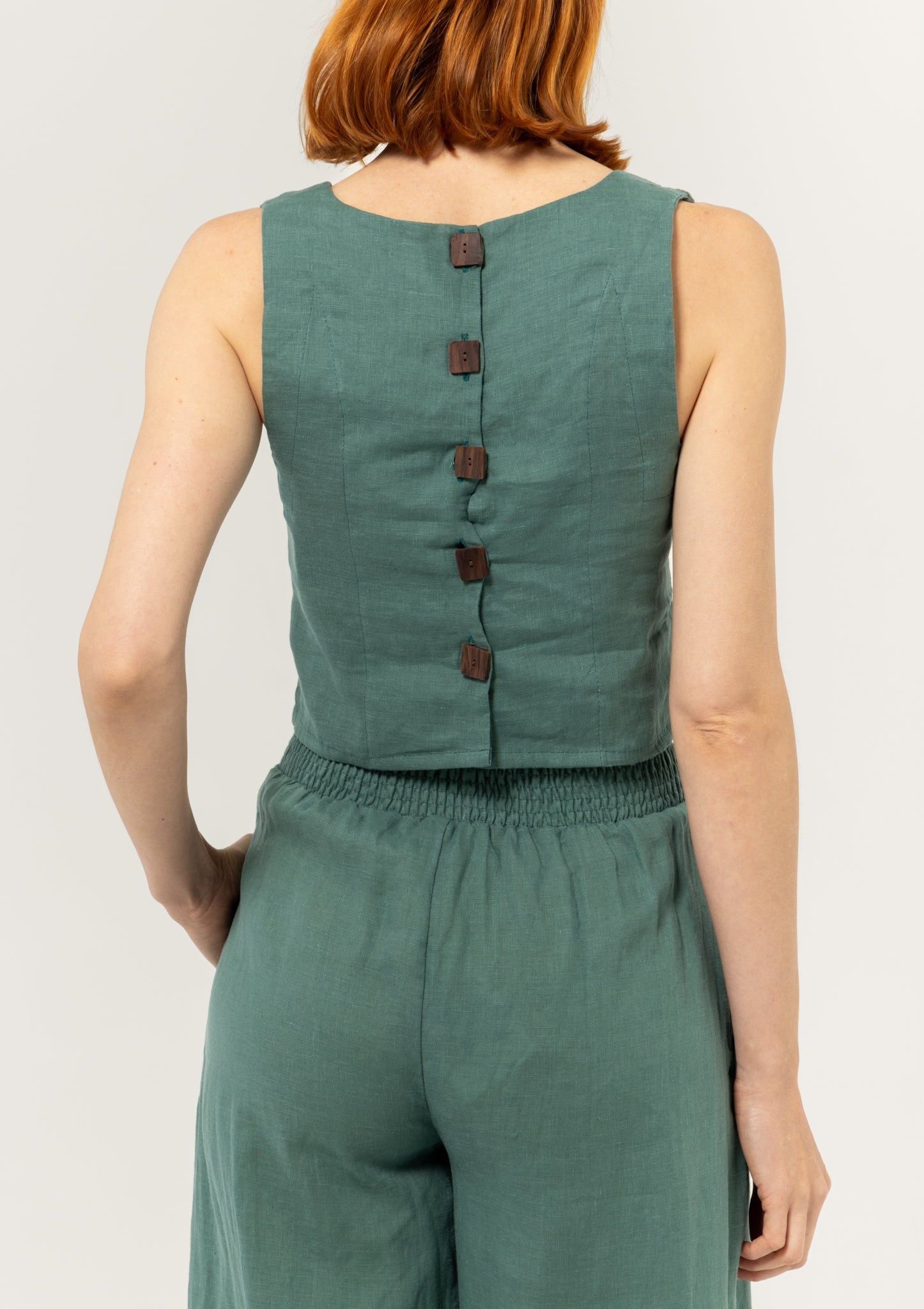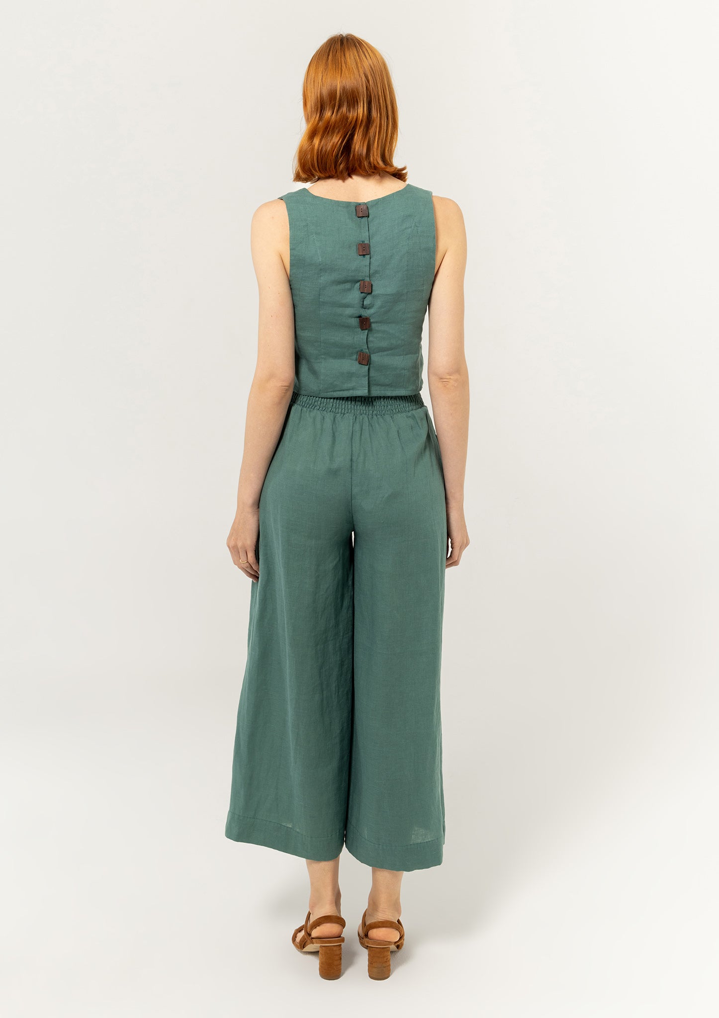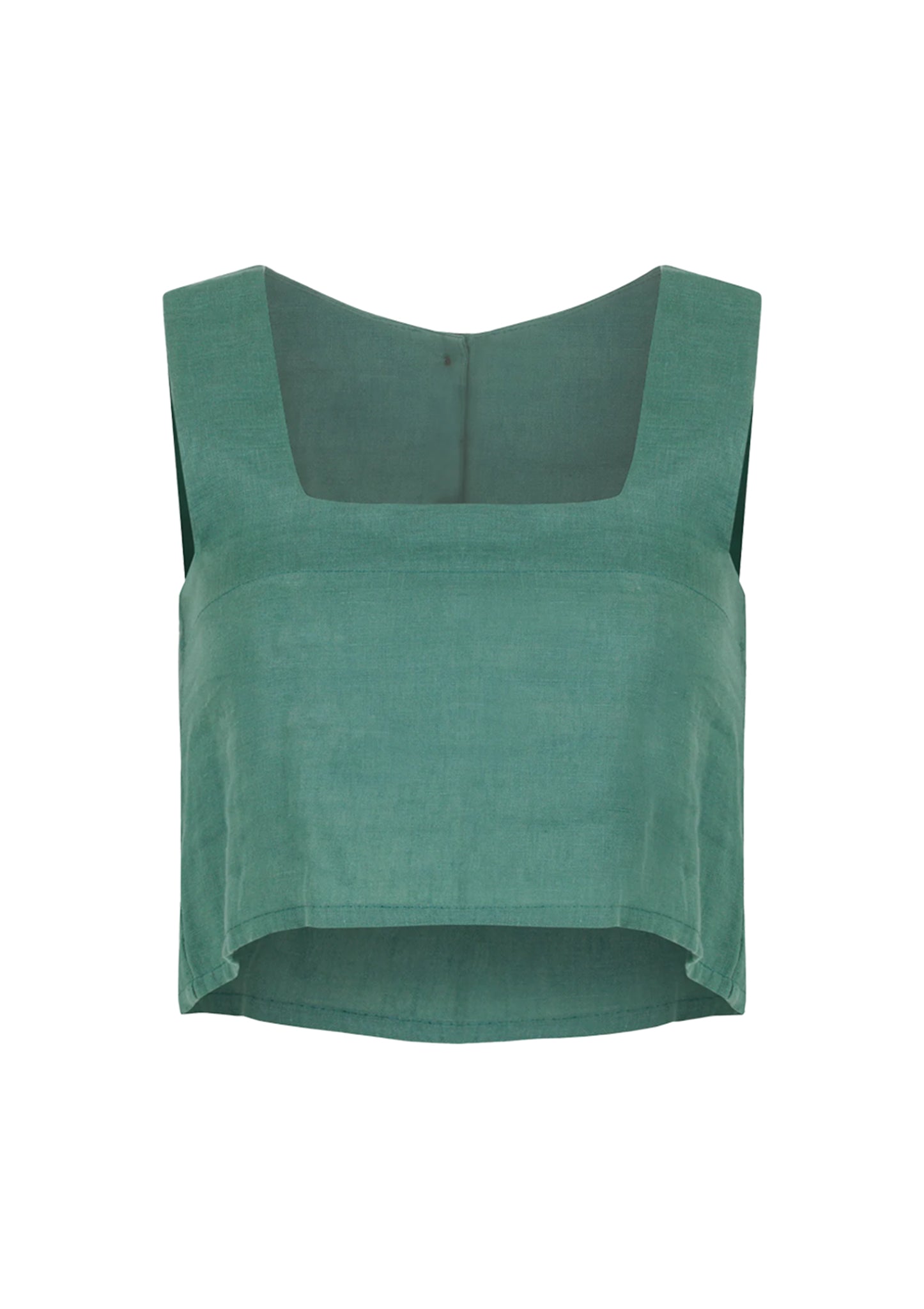 It’s in the details. This apron tank has a squared neckline in the front, the sweetest coconut buttons in the back and does it all in vibrant hues. Pair with the Atlas Pant.