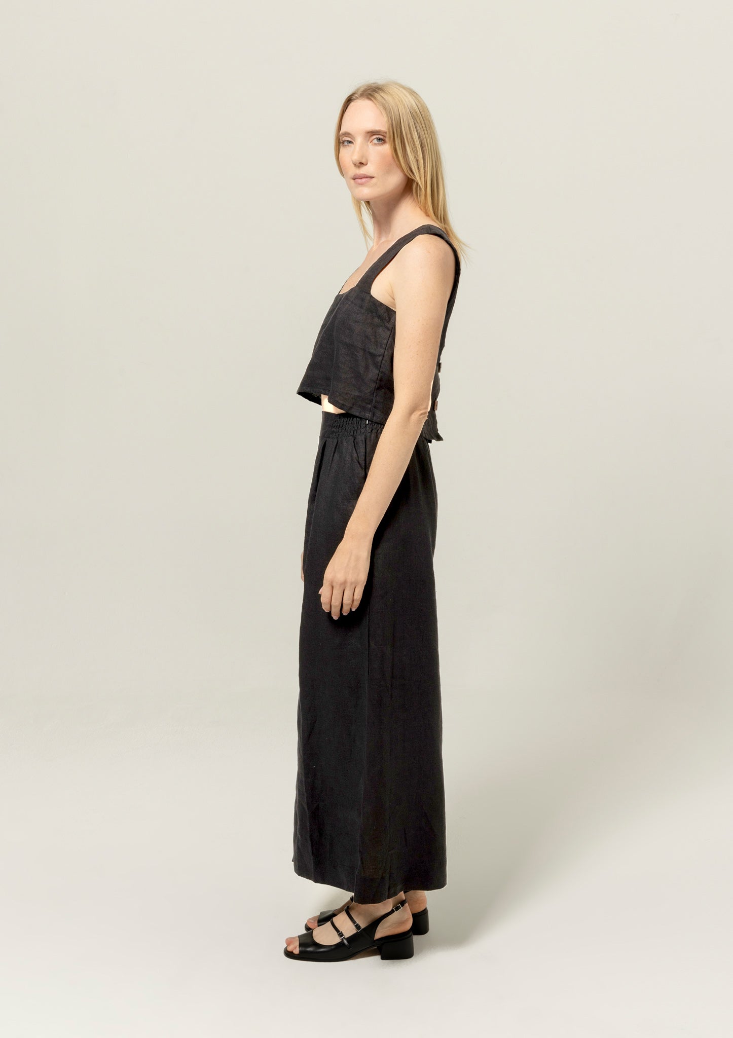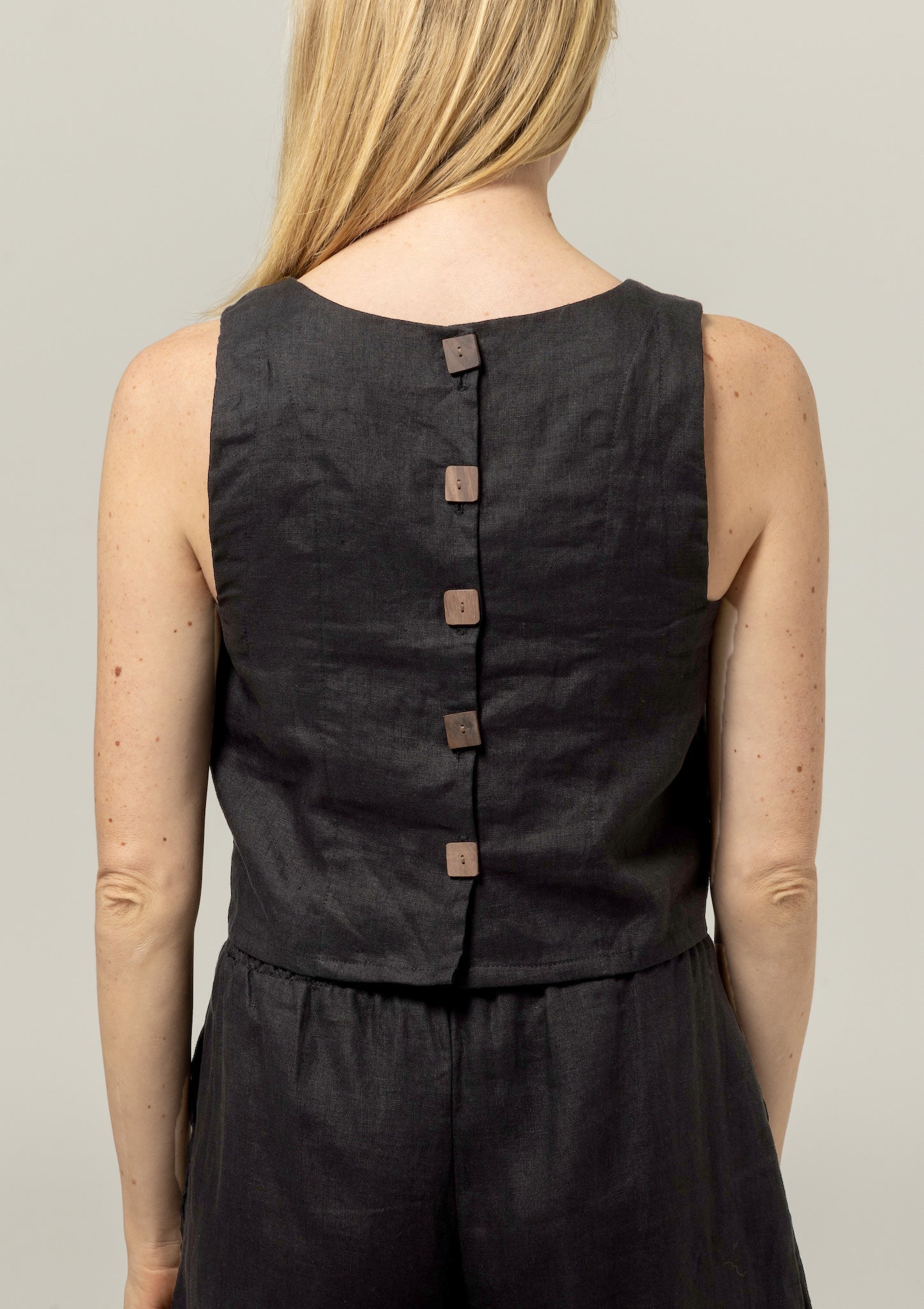 It’s in the details. This apron tank has a squared neckline in the front, the sweetest coconut buttons in the back and does it all in vibrant hues. Pair with the Atlas Pant.