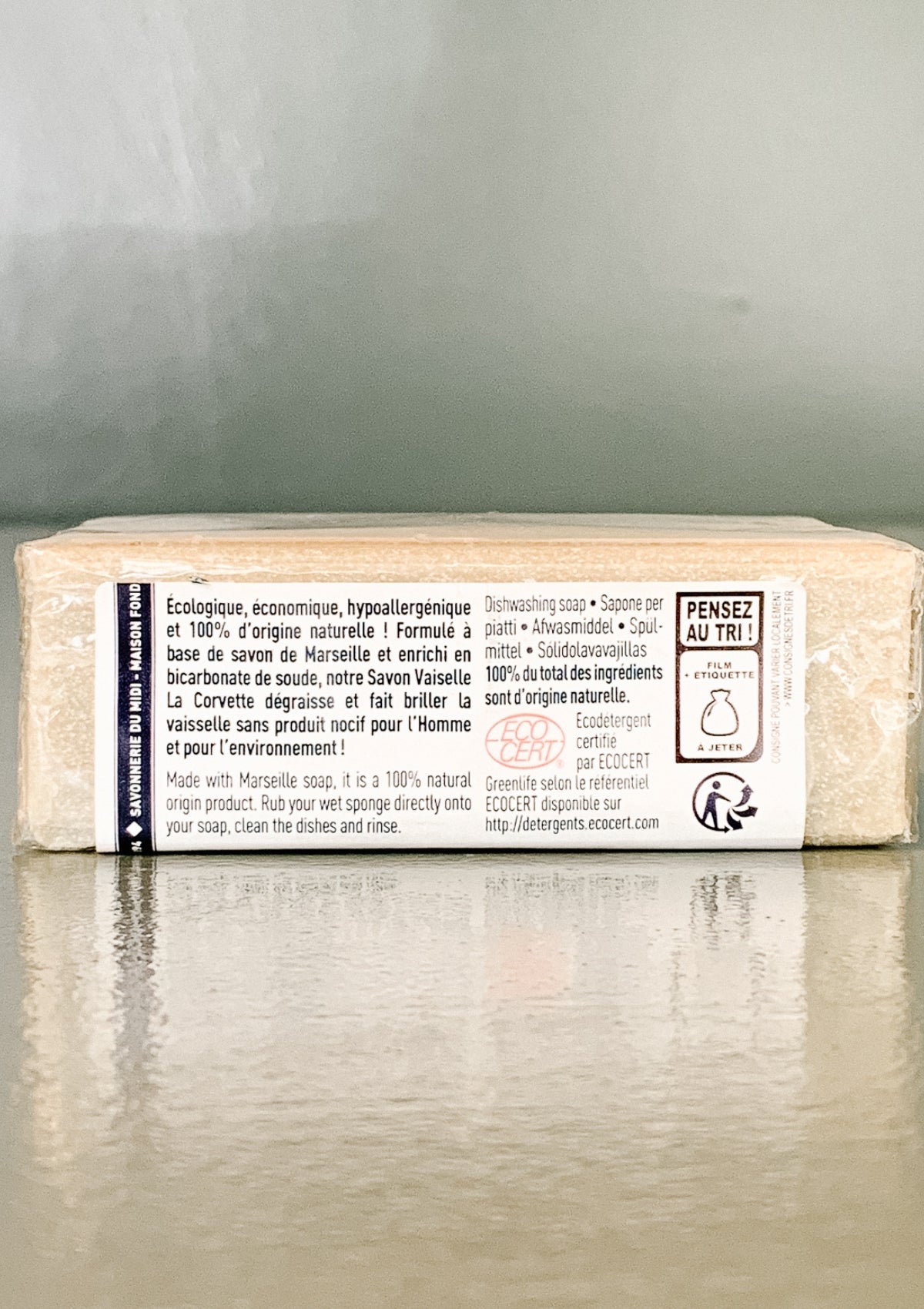 This Soap is crafted from 100 % natural ingredients. Marseille soap and bicarbonate soda work to degrease dishes and leave a glossy shine.
