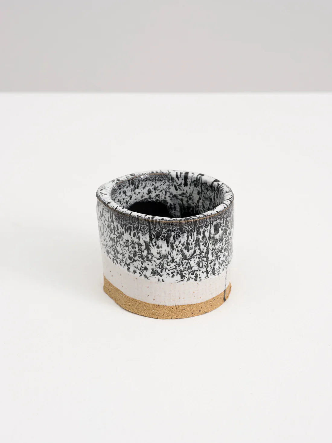MEZCAL CUPS IN CRACKLE GLAZE WITH VISIBLE STONEWARE DETAIL