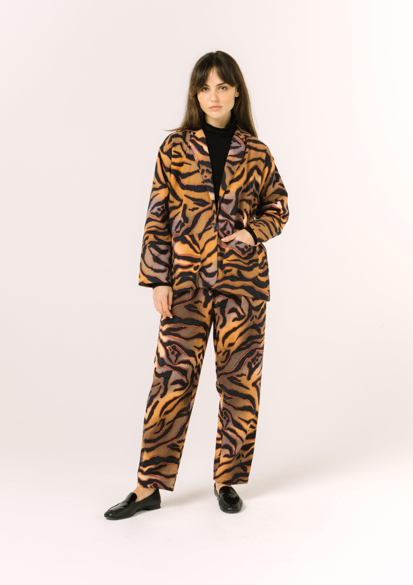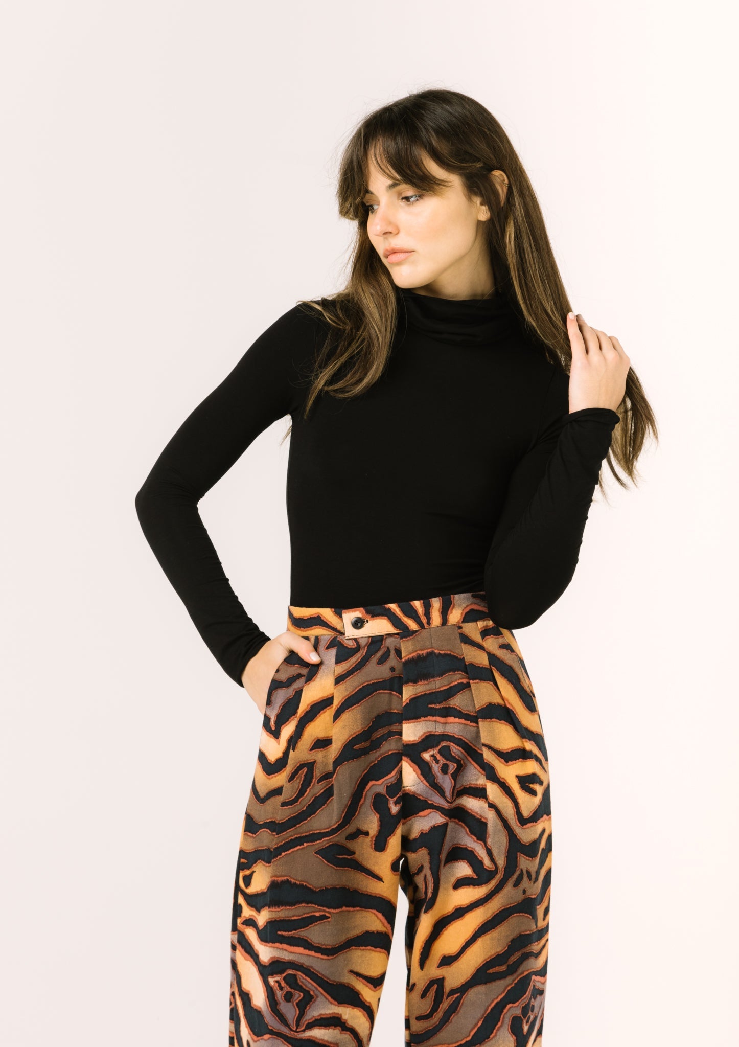 With a classic silhouette and pleated front, Vega will never go out of style. Pair it with the Akia Blazer and Rue Bodysuit to complete the look.